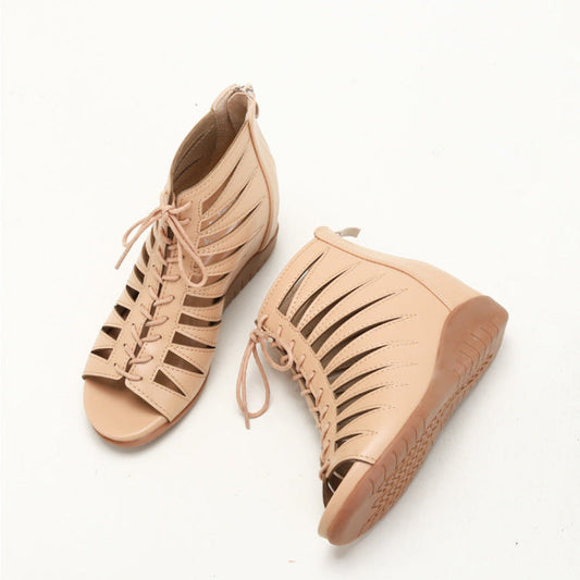 Damen Sandalen Mit Keilsohle Beige Lederoptik Komfort Bequem